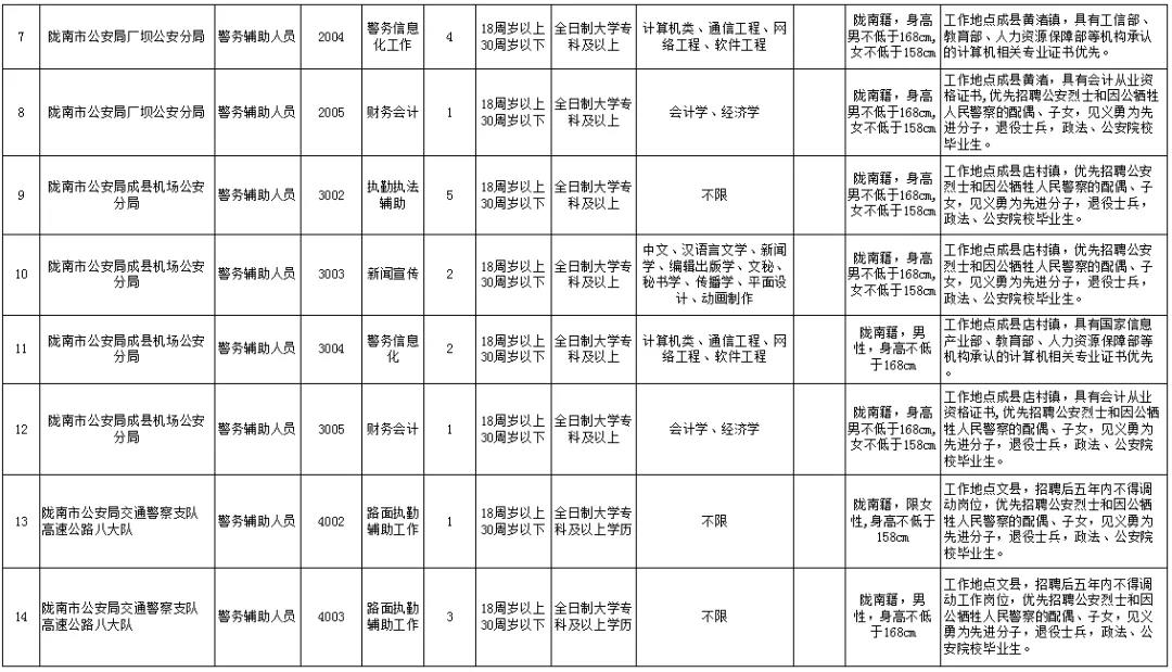 (四)本招聘公告由隴南市公安局負(fù)責(zé)解釋。
