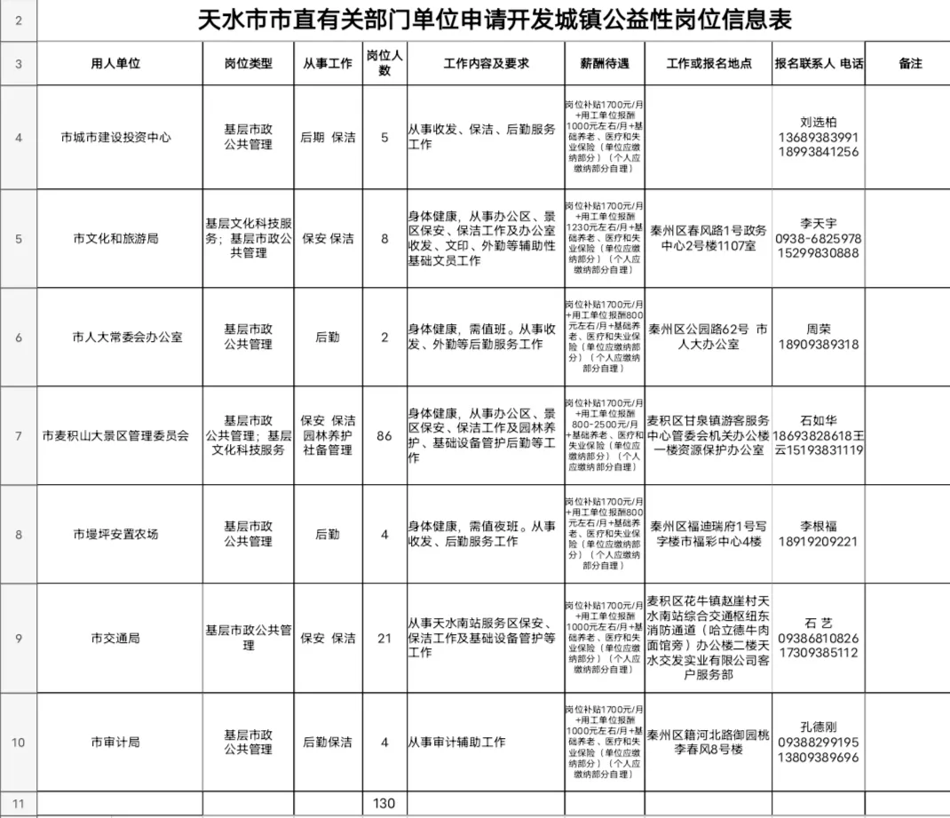 2021年天水市本級(jí)招聘城鎮(zhèn)公益性崗位工作人員公告