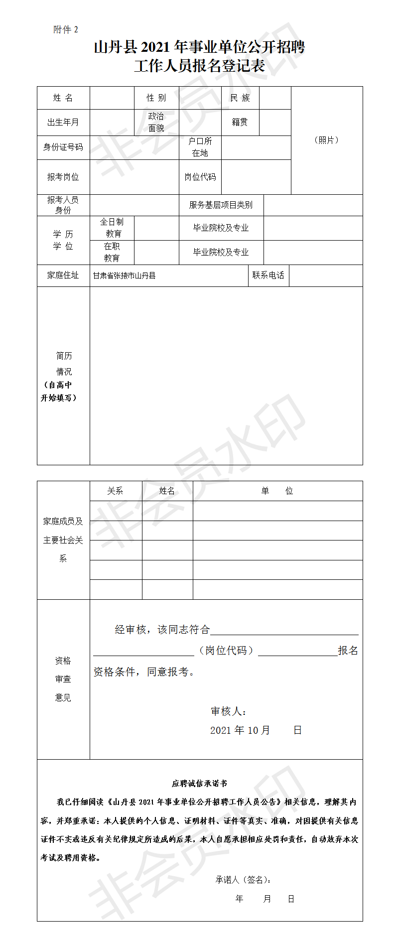 2.《山丹縣2021年事業(yè)單位公開(kāi)招聘工作人員報(bào)名登記表》