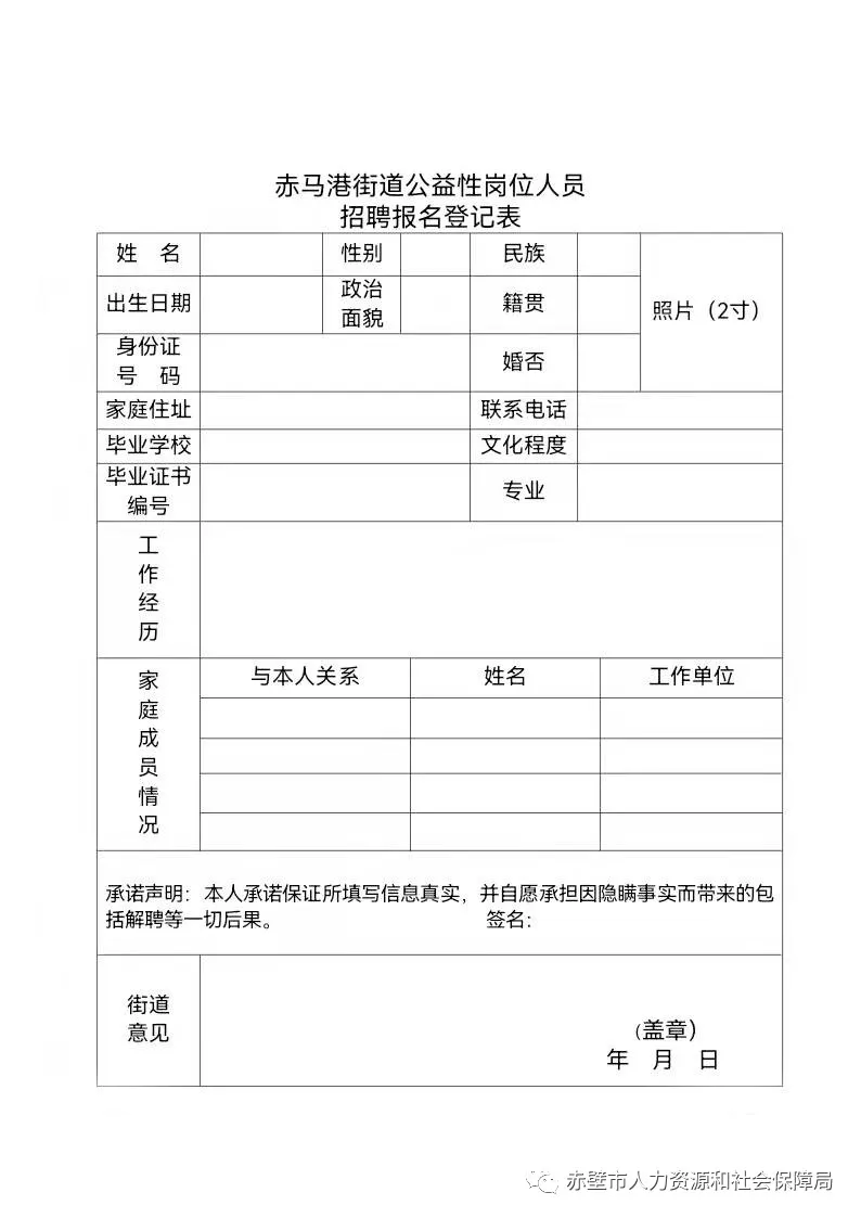 (1)赤馬港街道公益性崗位人員招聘報(bào)名登記表