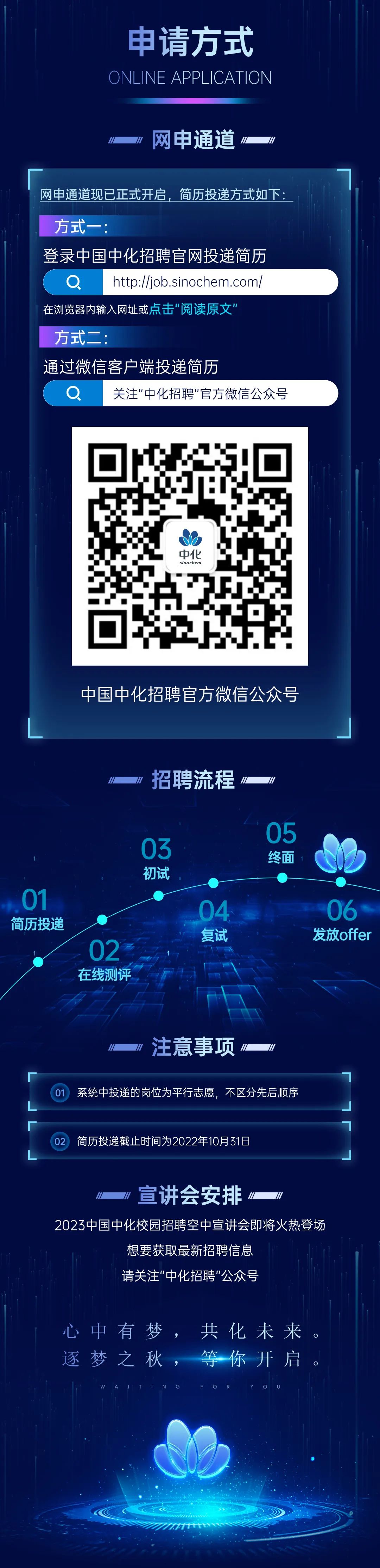 2022-09-13 11:37:24閱讀()中國(guó)雄安據(jù)國(guó)聘發(fā)布消息,中國(guó)中化控股有限責(zé)任公司現(xiàn)招聘2694名2022、2023屆國(guó)內(nèi)外高校畢業(yè)生,共822個(gè)崗位。有意者可于10月31日前登錄中國(guó)中化招聘官網(wǎng)(https://sinochem.hotjob.cn/)或關(guān)注“中化招聘”官方微信公眾號(hào)投遞簡(jiǎn)歷。