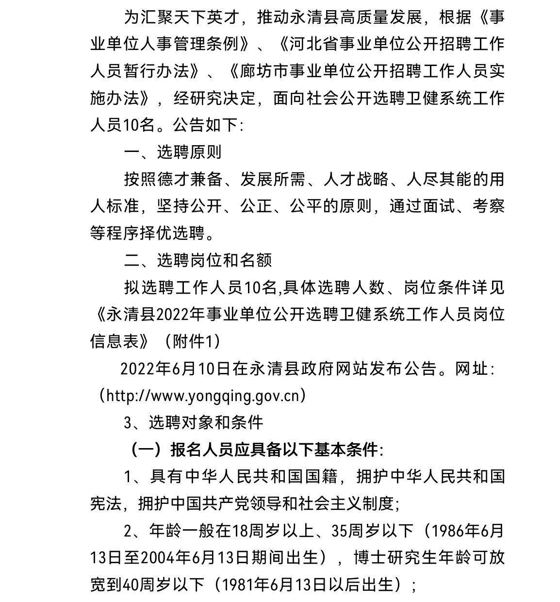 2022年廊坊永清縣事業(yè)單位公開選聘衛(wèi)健系統(tǒng)工作人員公告