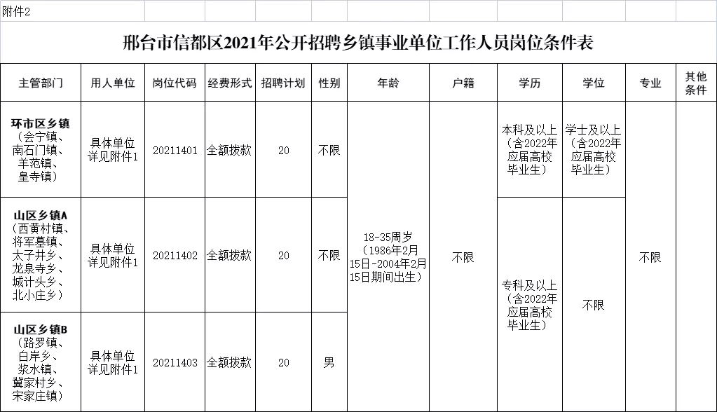 2.《邢臺(tái)市信都區(qū)2021年公開(kāi)招聘鄉(xiāng)鎮(zhèn)事業(yè)單位工作人員崗位條件表》