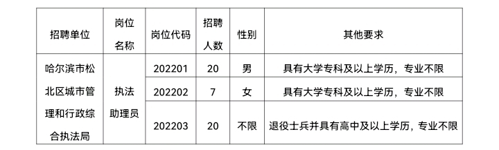 2022年哈爾濱市松北區(qū)城市管理和行政綜合執(zhí)法局公開招聘執(zhí)法助理員公告