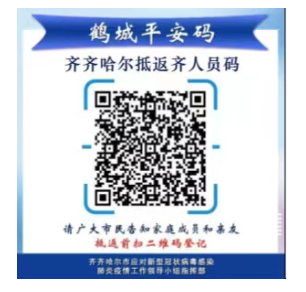 凡近期在市域外抵返齊齊哈爾人員,抵返前2天主動報備,在進(jìn)入齊齊哈爾市市域前,要使用手機掃描“齊齊哈爾抵返齊人員碼”,點擊進(jìn)入程序后,按照注冊內(nèi)容要求,如實完整填寫相關(guān)信息。抵返后12小時內(nèi)主動報告,24小時內(nèi)盡早主動接受第一次核酸檢測并配合落實分類管控措施。