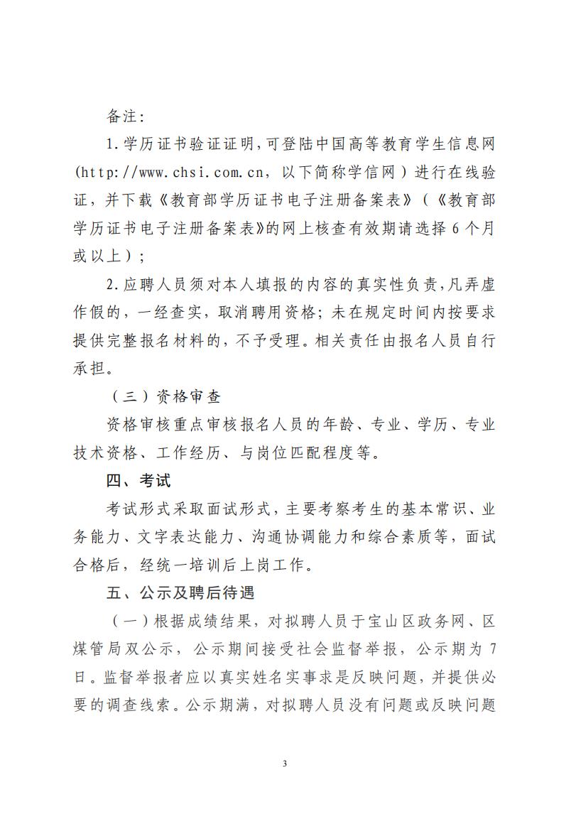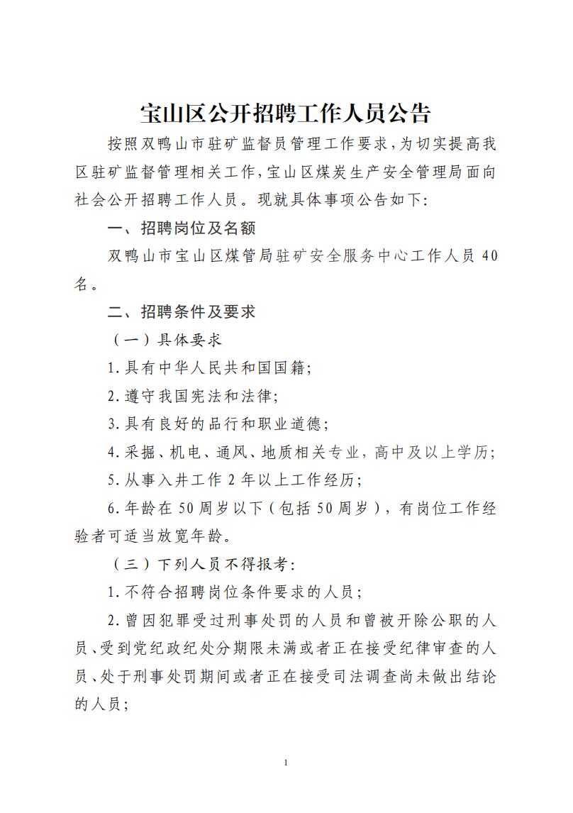 2024-01-27 22:43:14閱讀()雙鴨山市寶山區(qū)人民政府按照雙鴨山市駐礦監(jiān)督員管理工作要求,為切實(shí)提高我區(qū)駐礦監(jiān)督管理相關(guān)工作,寶山區(qū)煤炭生產(chǎn)安全管理局面向社會(huì)公開(kāi)招聘工作人員?,F(xiàn)就具體事項(xiàng)公告如下:
