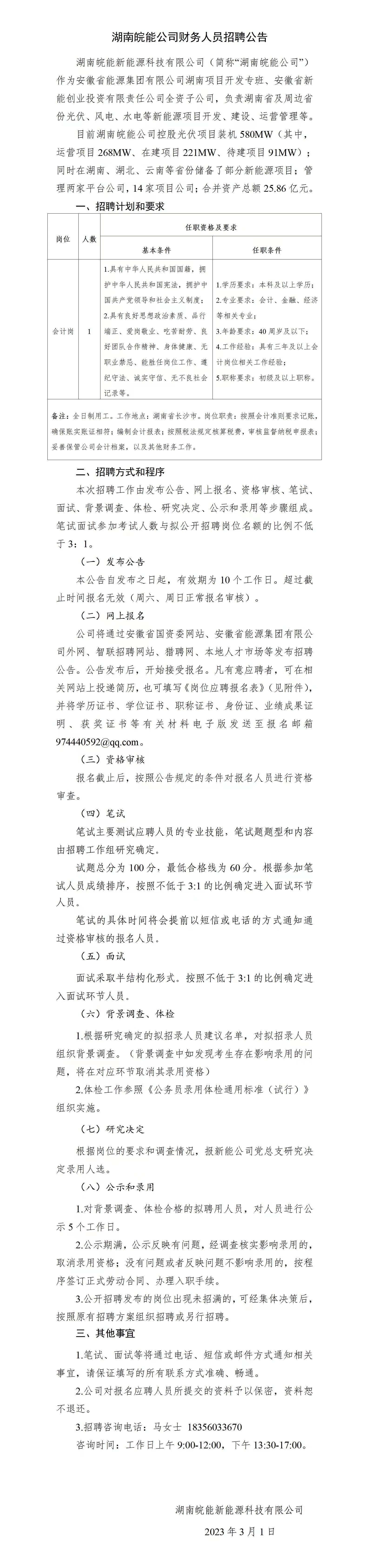 2023-03-01 19:44:58閱讀()安徽省能源集團有限公司湖南皖能新能源科技有限公司(簡稱“湖南皖能公司”)