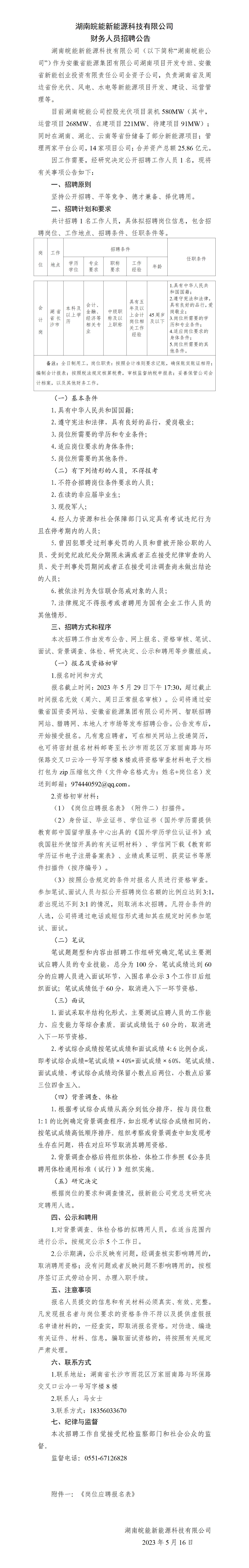 2023年湖南皖能新能源科技有限公司財(cái)務(wù)人員招聘公告