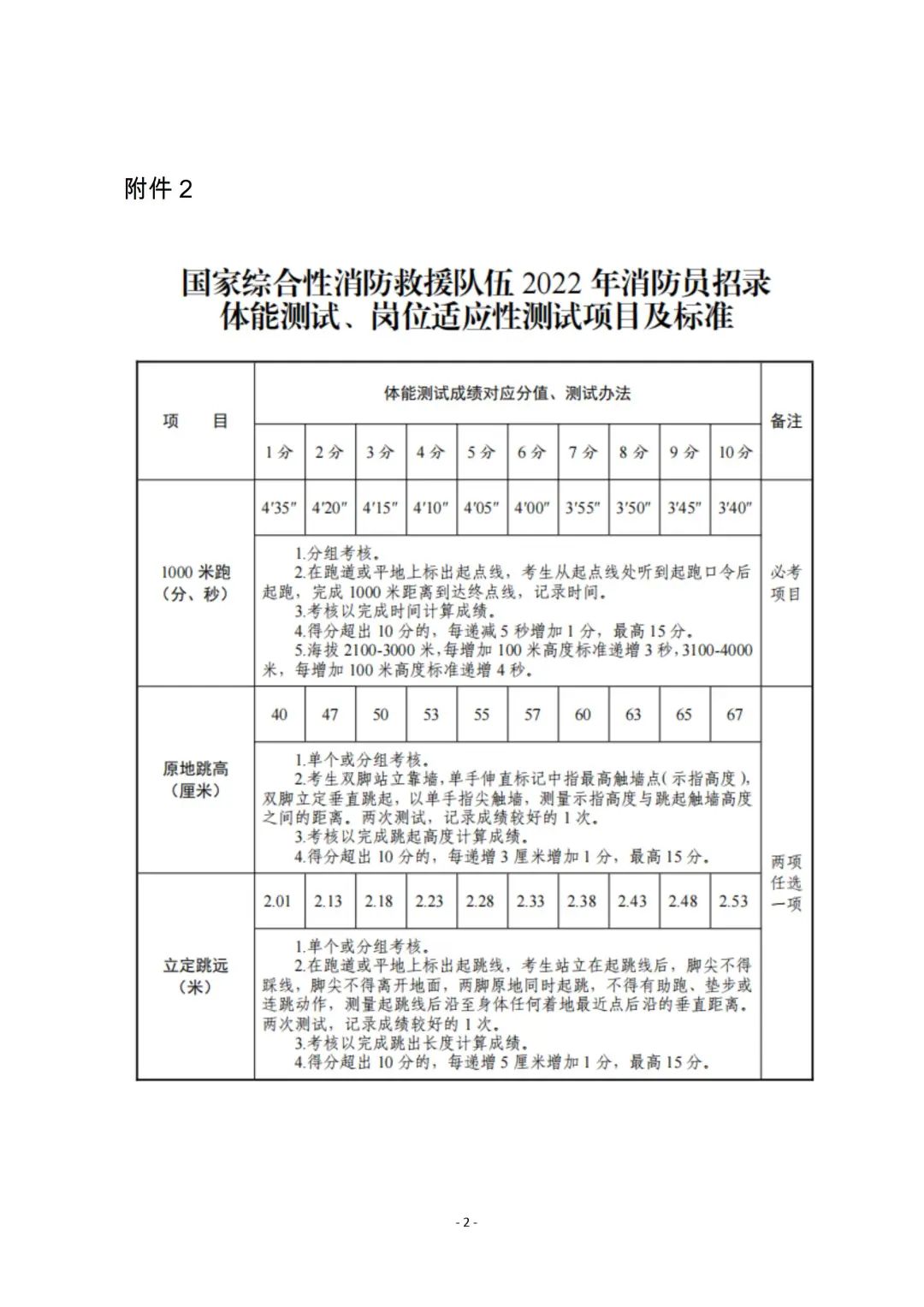 附件2:國家綜合性消防救援隊伍2022年消防員招錄體能測試、崗位適應(yīng)性測試項目及標(biāo)準(zhǔn)