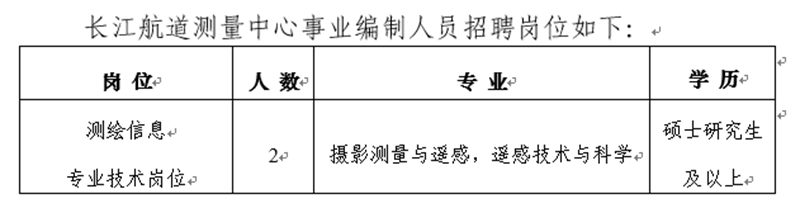 2022年長(zhǎng)江航道測(cè)量中心事業(yè)編制人員招聘公告