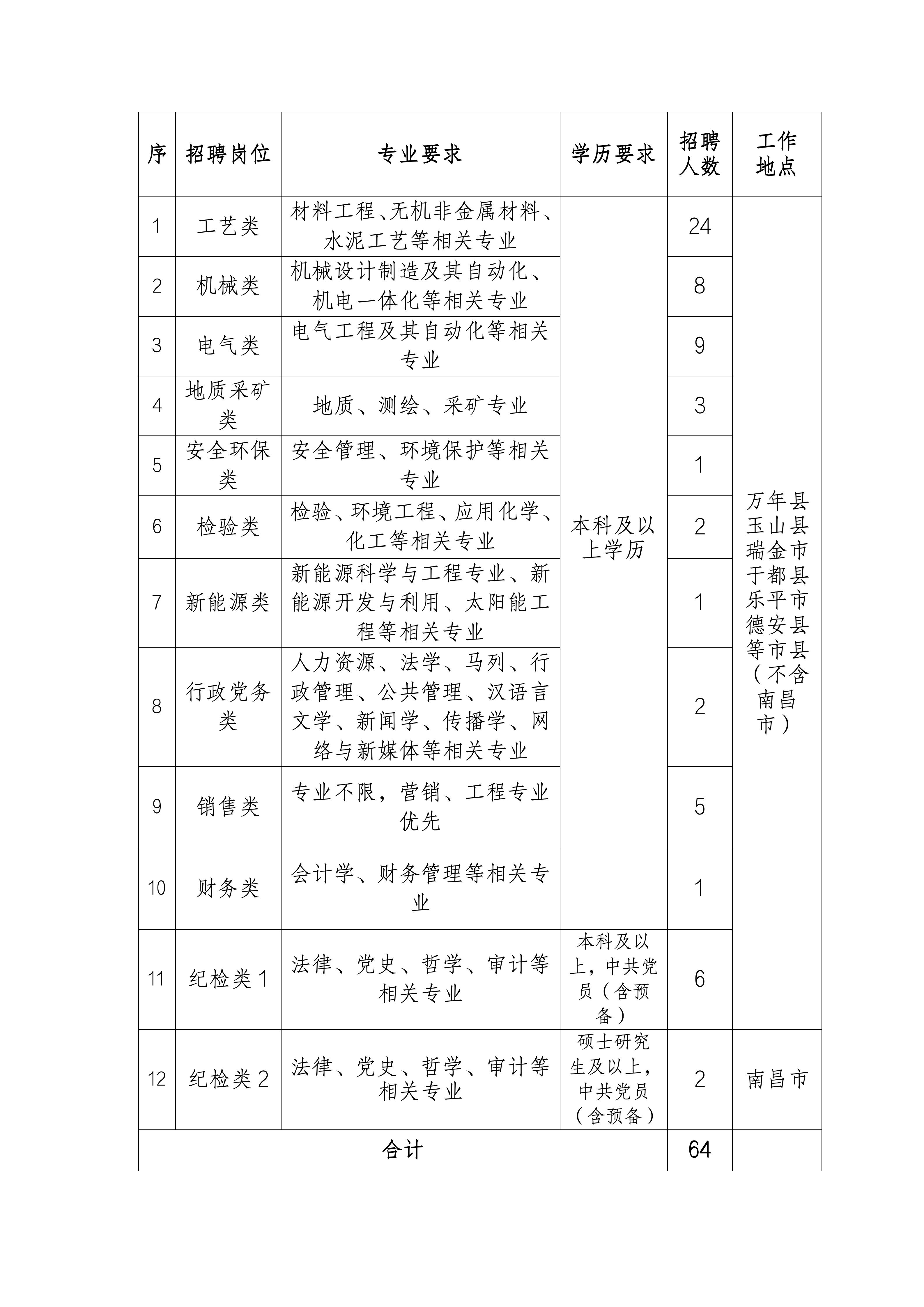 為滿足公司的生產(chǎn)經(jīng)營(yíng)需求,面向社會(huì)公開(kāi)招聘,本次招聘崗位類別12個(gè),招聘人數(shù)共計(jì)64人,人員分配到江西省內(nèi)下屬各生產(chǎn)基地。