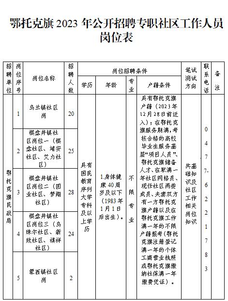 2023年鄂爾多斯鄂托克旗公開(kāi)招聘專職社區(qū)工作人員簡(jiǎn)章