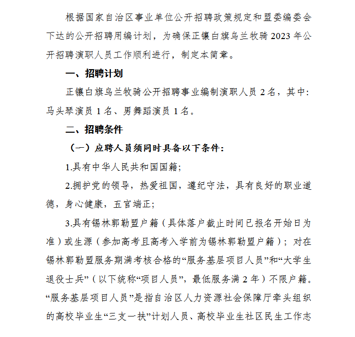 2023年錫林郭勒盟正鑲白旗烏蘭牧騎公開(kāi)招聘演職人員簡(jiǎn)章