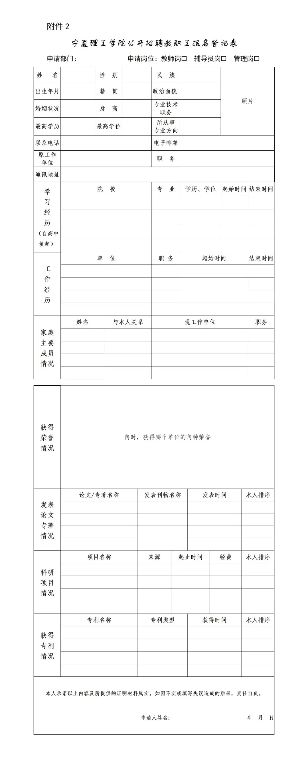 2.《寧夏理工學(xué)院公開(kāi)招聘教職工報(bào)名登記表》