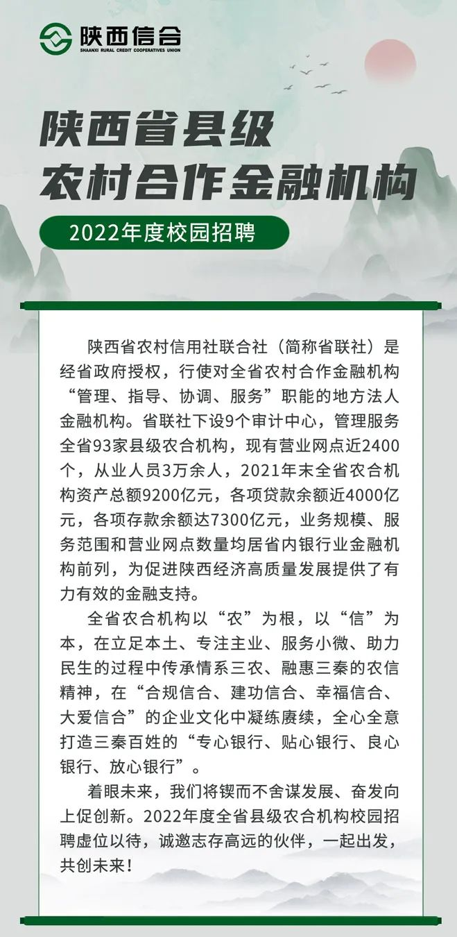 2022年陜西省縣級農(nóng)村合作金融機構(gòu)校園招聘公告