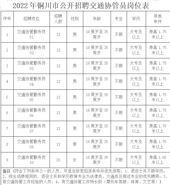 本次計劃招聘120人,其中男性100名,女性20名,參與市級行政部門交通協(xié)管工作。