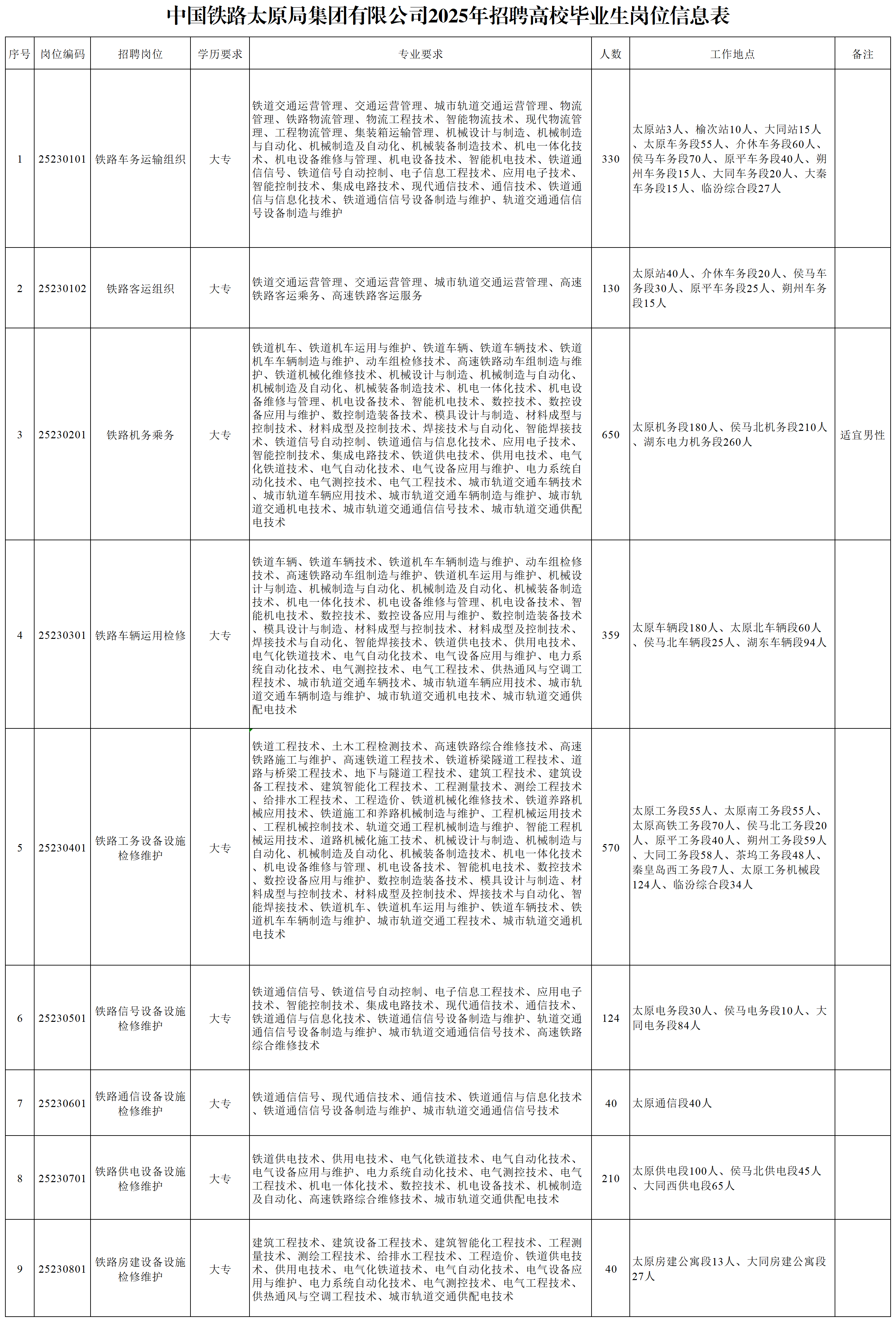 2025年中國鐵路太原局集團(tuán)有限公司招聘高校畢業(yè)生公告(二)