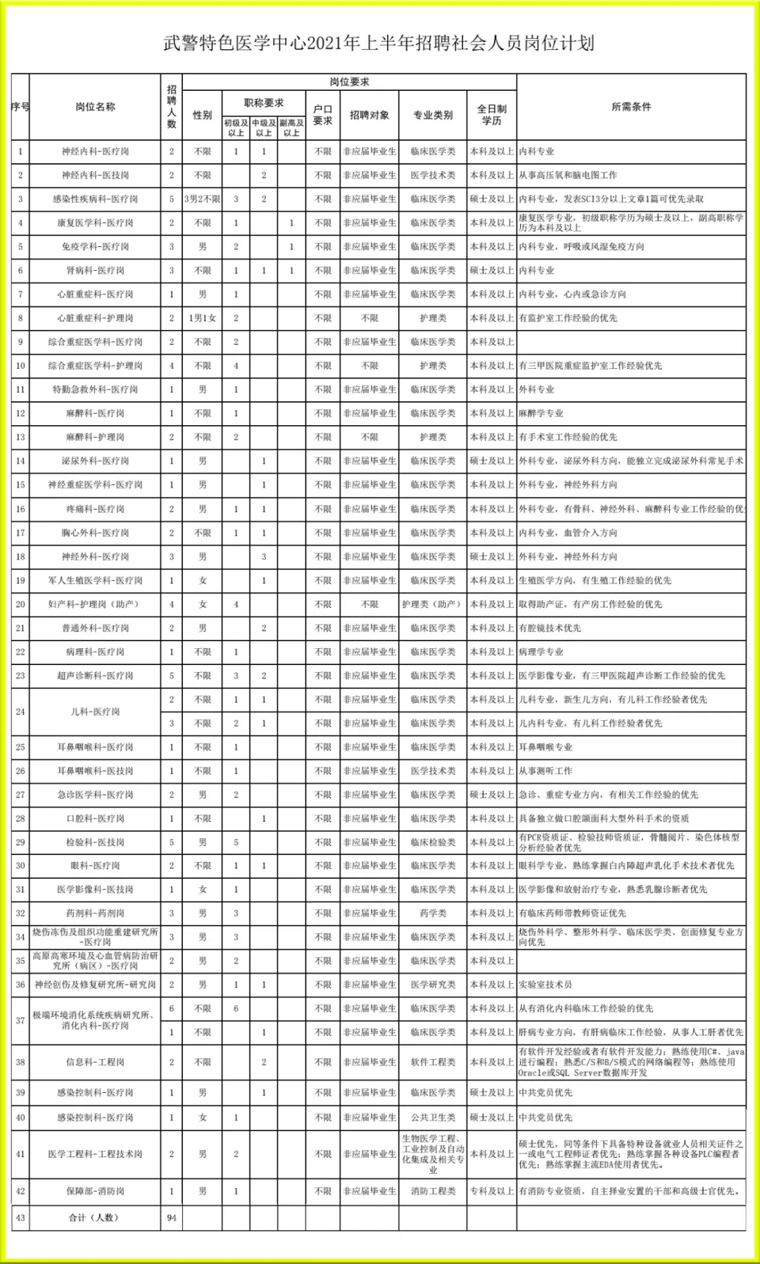 附件:《武警特色醫(yī)學中心2021年上半年招聘社會人員崗位計劃》