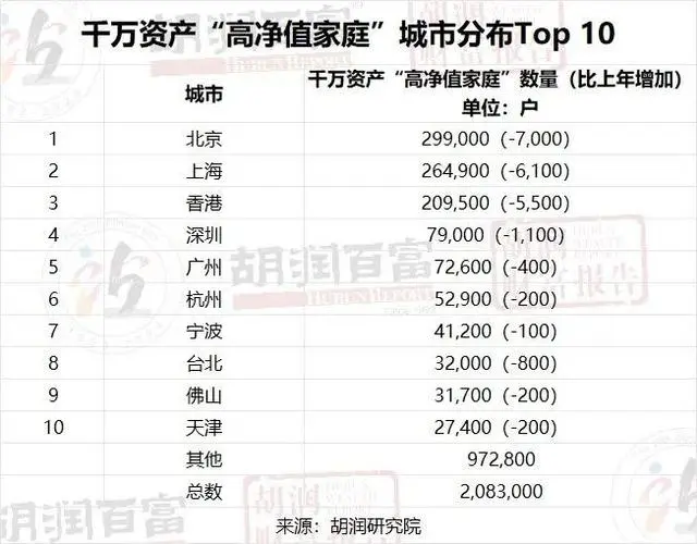 廣東地區(qū)今年成為最多千萬元資產(chǎn)“高凈值家庭”的地區(qū),比上年減少8000戶至30萬戶,減少2.2%,其中擁有千萬元可投資資產(chǎn)的“高凈值家庭”數(shù)量有16.9萬戶;北京第二,比上年減少7000戶,達(dá)到29.9萬戶,減少2.3%,其中擁有千萬可投資資產(chǎn)的“高凈值家庭”數(shù)量有15.2萬戶;上海第三,千萬元資產(chǎn)“高凈值家庭”比上年減少6100戶至26.5萬戶,減少2.3%,其中擁有千萬元可投資資產(chǎn)的“高凈值家庭”數(shù)量有14.7萬戶;浙江第四,千萬元資產(chǎn)“高凈值家庭”比上年減少1200戶,達(dá)到21.5萬戶,減少0.6%,其中擁有千萬元可投資資產(chǎn)的“高凈值家庭”數(shù)量有10.7萬戶;香港第五,千萬元資產(chǎn)“高凈值家庭”比上年減少5500戶,達(dá)到21萬戶,減少2.6%,其中擁有千萬元可投資資產(chǎn)的“高凈值家庭”數(shù)量有10.7萬戶。