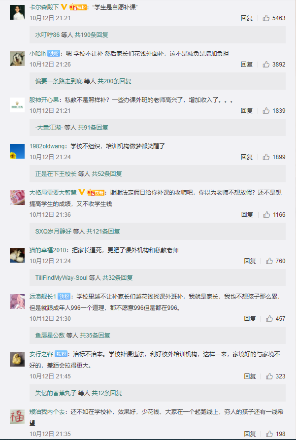 對于這樣的情況,您怎么看呢?從微博話題中看出,部分網(wǎng)友認為,“學校教學減負了,學生學習更累了,家長壓力更大了,校外培訓機構(gòu)笑了!”