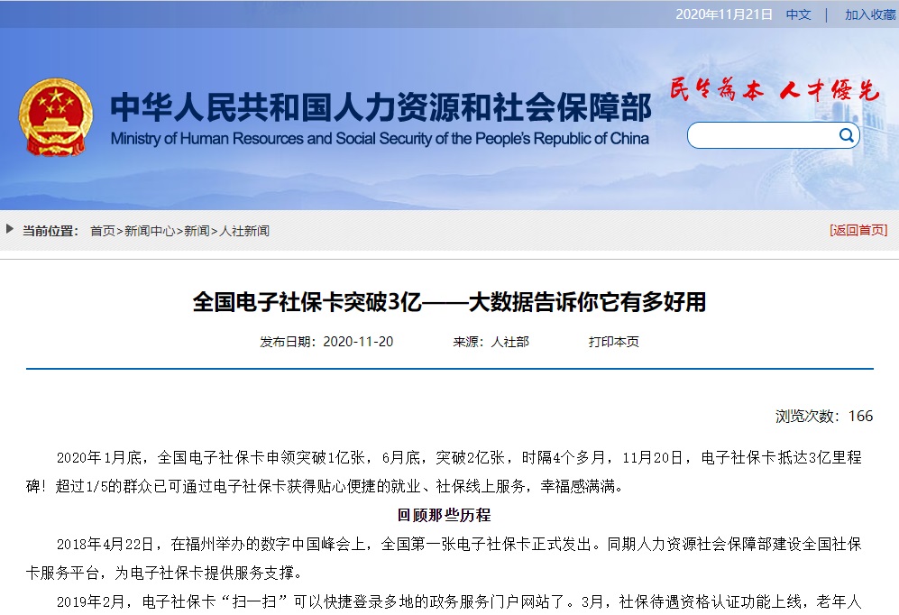 2020-11-21 17:28:10閱讀()人社部11月21日消息 根據(jù)人社部的消息,截至 11 月 20 日,電子社??ǖ诌_(dá) 3 億里程碑,超過 1/5 的群眾已可通過電子社??ǐ@得貼心便捷的就業(yè)、社保線上服務(wù)。