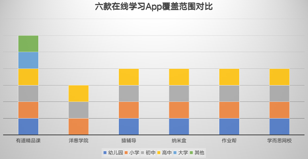 從學習階段的覆蓋范圍來看,有道精品課首當其中,洋蔥學院最少。