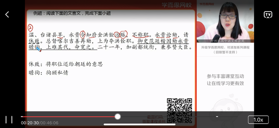 學而思網(wǎng)校提供了免費直播課程,無法設置清晰度,可投屏到電視。
