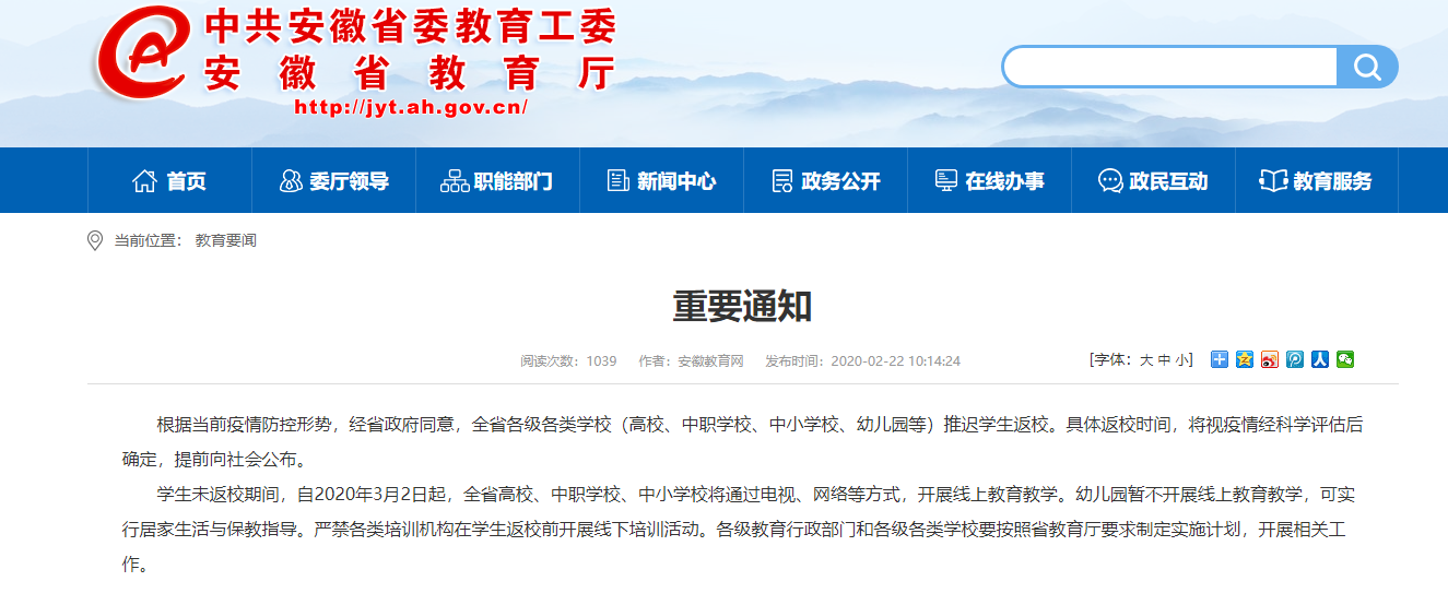 安徽大中小學(xué)3月2日起將全面啟動(dòng)線上教學(xué)