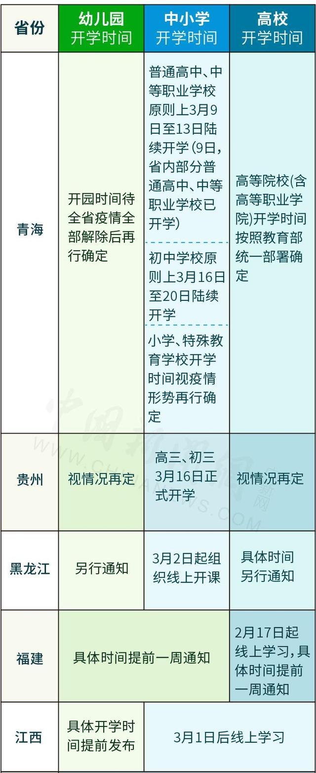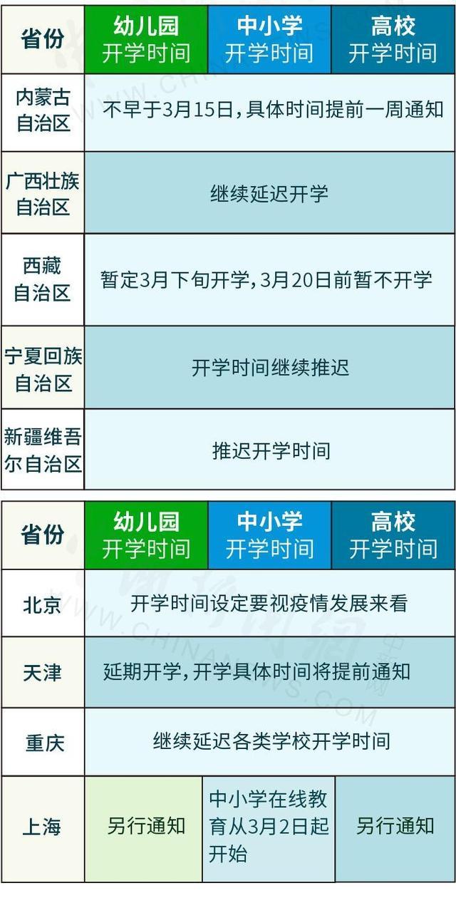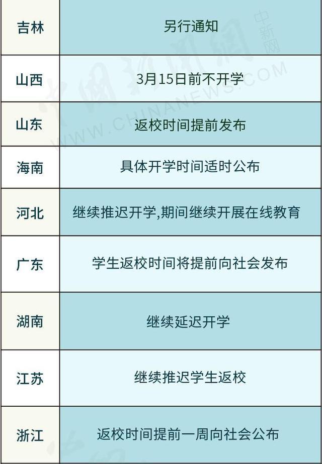 2020-03-10 12:52:07閱讀()中國(guó)新聞網(wǎng)一圖看明白!31省份開學(xué)時(shí)間一覽表,隨著疫情往好的方向發(fā)展,截止2020年3月10日已經(jīng)有幾個(gè)省、自治區(qū)相繼清零,各中小學(xué)高校也開始做好開學(xué)準(zhǔn)備,下圖來自中國(guó)新聞網(wǎng)匯總的“31省份開學(xué)時(shí)間一覽表”