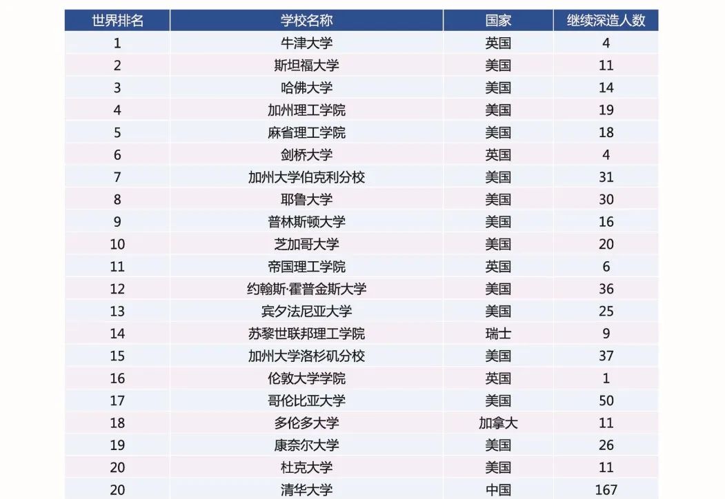 依據泰晤士高等教育2021年世界大學排名,中國科大近五屆本科畢業(yè)生前往世界排名前100位一流大學繼續(xù)深造人數占深造總人數的的比例為76.1%,包括牛津大學、斯坦福大學、哈佛大學等。本科畢業(yè)生直接工作主要單位,則包括了普聯(lián)、華為、國盾量子、科大訊飛等等。