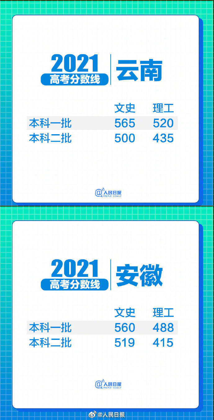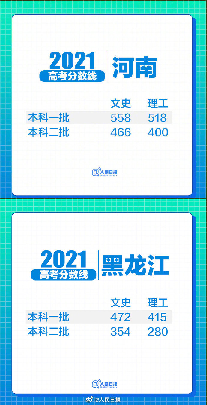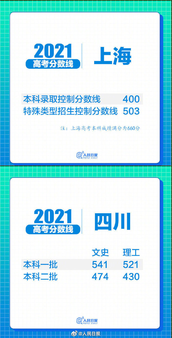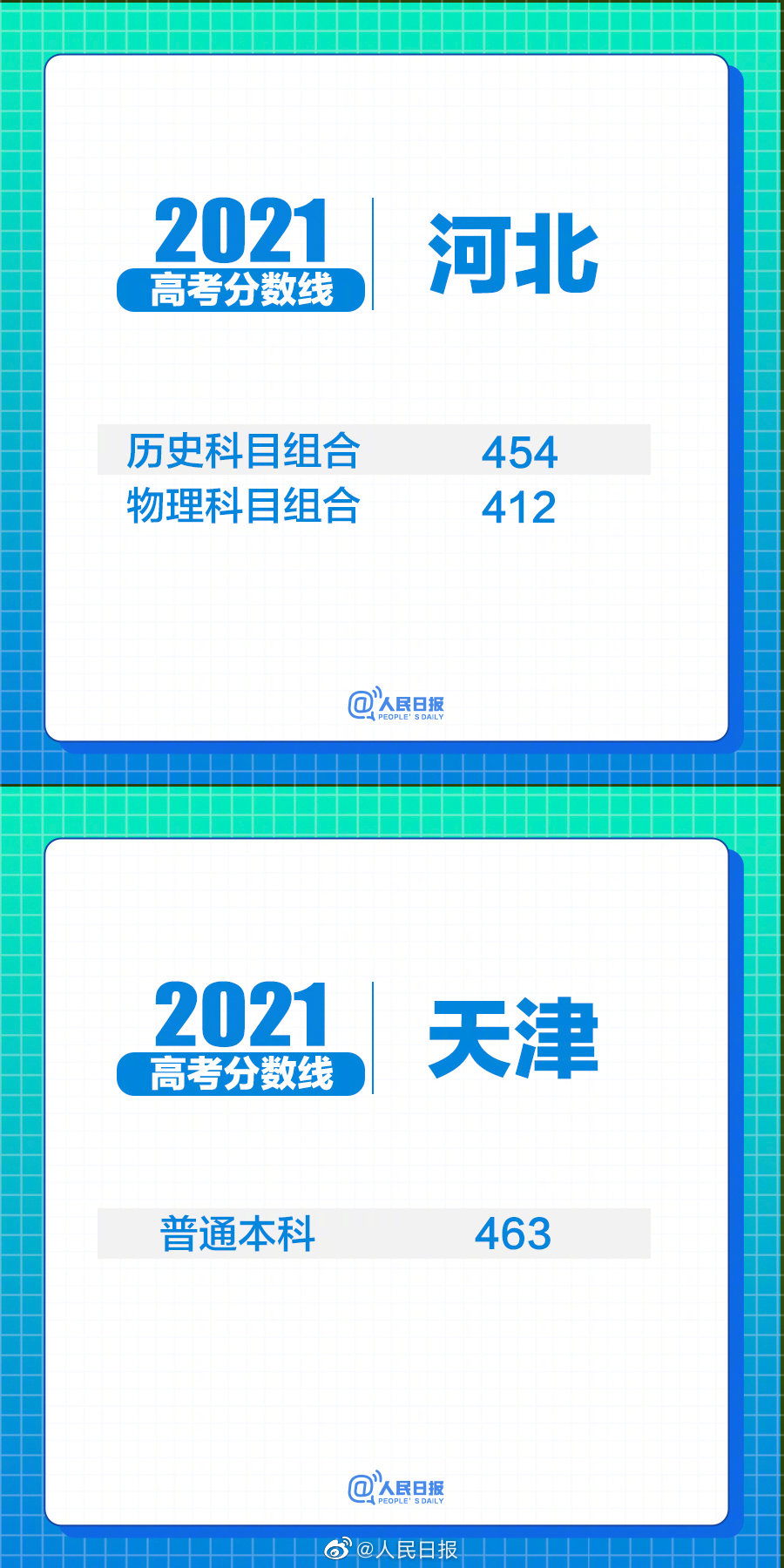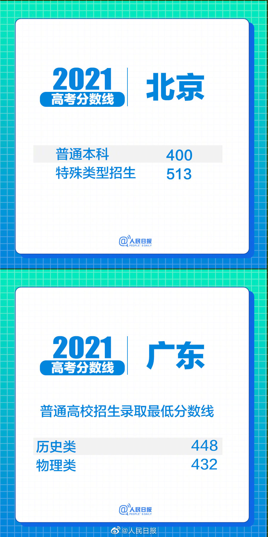 2021-06-26 17:23:14閱讀()人民日報31省區(qū)市2021高考分?jǐn)?shù)線匯總,截至目前,31個省區(qū)市已陸續(xù)公布了2021年高考各批次錄取分?jǐn)?shù)線↓↓祝大家都能進(jìn)入自己理想的大學(xué)! ????