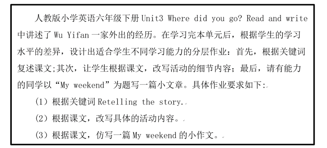 作業(yè)內(nèi)容的選取與呈現(xiàn)形式,要富有創(chuàng)意,在突出基礎(chǔ)知識和基本能力的同時,增加“動手、動口、動腦”等實踐性作業(yè),力求知識性與實踐性的有機結(jié)合。