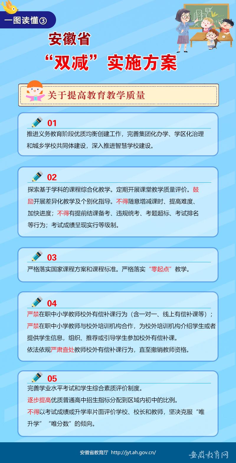 一圖讀懂《安徽省進一步減輕義務教育階段學生作業(yè)負擔和校外培訓負擔的實施方案》
