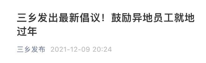 廣東中山市三鄉(xiāng)鎮(zhèn)新冠疫情防控指揮部辦公室已于12月9日向鎮(zhèn)內(nèi)企業(yè)發(fā)出倡議:廣大企業(yè)要鼓勵異地員工就地過年,形成“非必要不離廣東”的共識。