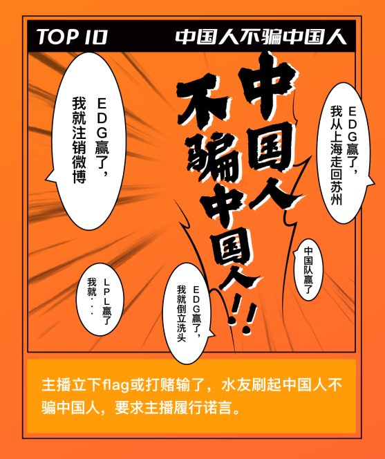 每當(dāng)主播們立下 Flag 卻輸了后,水友們最強(qiáng)有力的“催收”方式就是在屏幕上瘋狂刷起“中國(guó)人不騙中國(guó)人”的彈幕。一般面對(duì)這種情況,即便主播再想耍賴,也只能乖乖履約了。