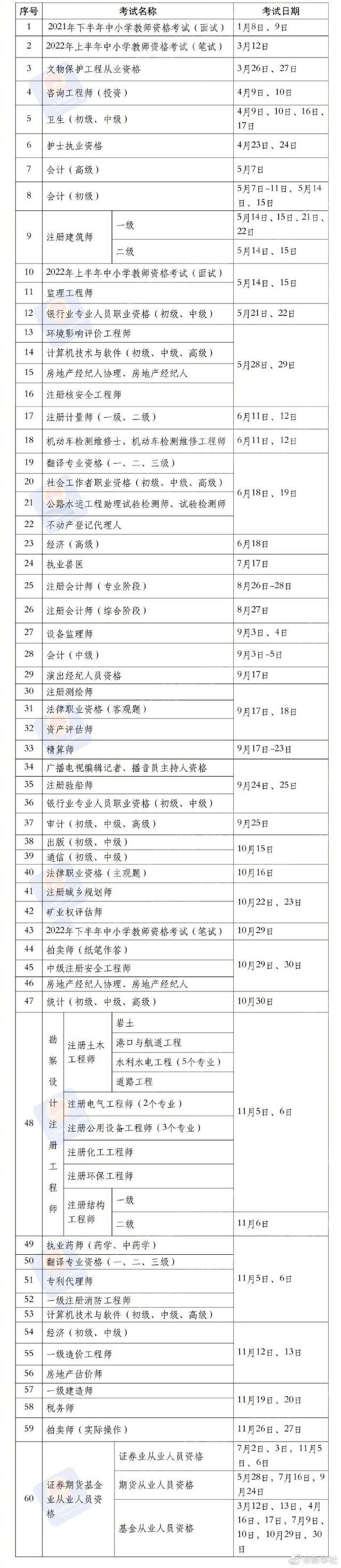 人社部:2022年國家職業(yè)資格考試時間表公布