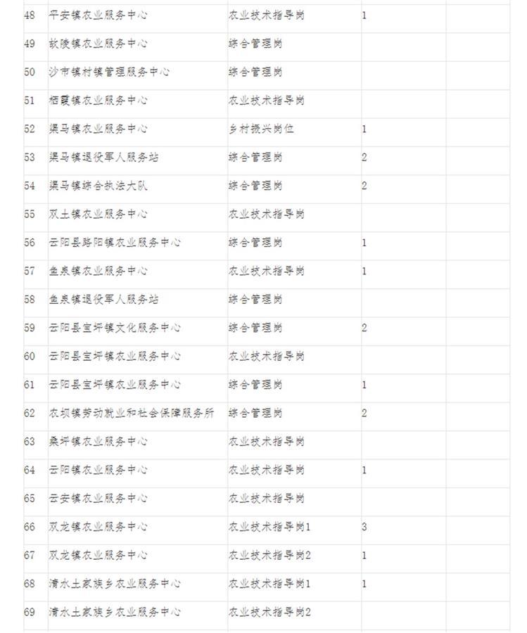 崗位情況一覽表(部分)