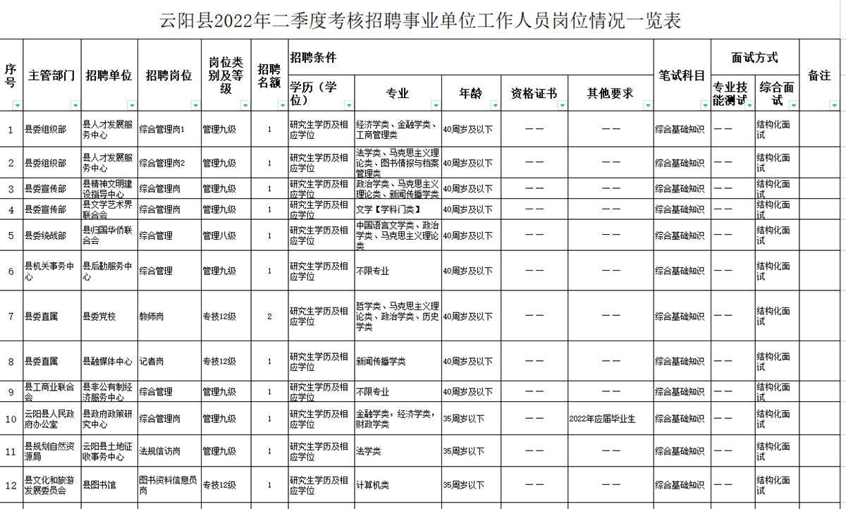 2022-05-22 08:35:07閱讀()互聯(lián)網(wǎng)近日,重慶云陽縣發(fā)布2022年二季度考核招聘事業(yè)單位工作人員公告,引起大量網(wǎng)友關(guān)注。極目新聞記者注意到,本次招聘工作人員190名,其中176個名額要求碩士生學(xué)歷及相應(yīng)學(xué)位,直到報名截止前一天,仍有73個崗位無人報名。其中一家用人單位回復(fù),如最終無人報名,招聘崗位可能會取消。