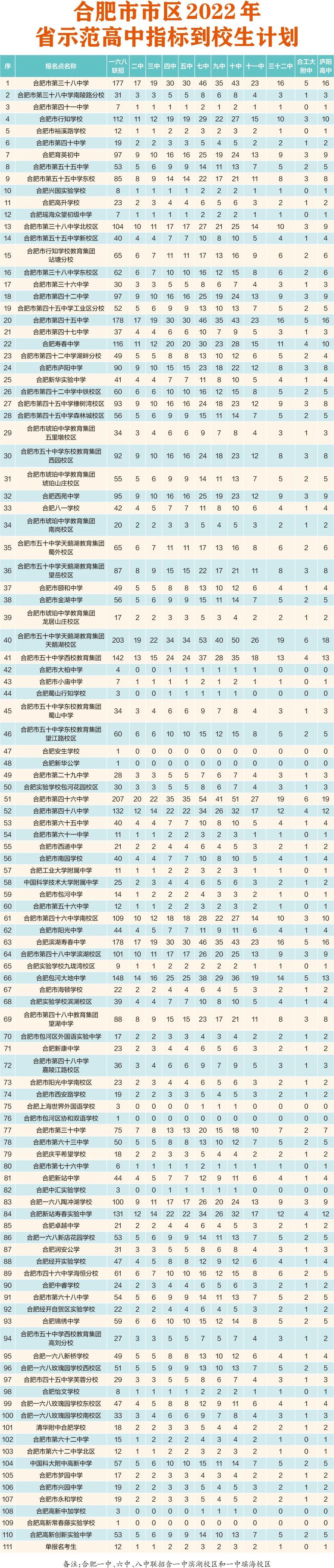 2022-06-18 09:14:22閱讀()合肥市教育局據(jù)合肥市教育局發(fā)布消息,6月17日,2022年合肥市區(qū)省示范高中指標到校生計劃公布。