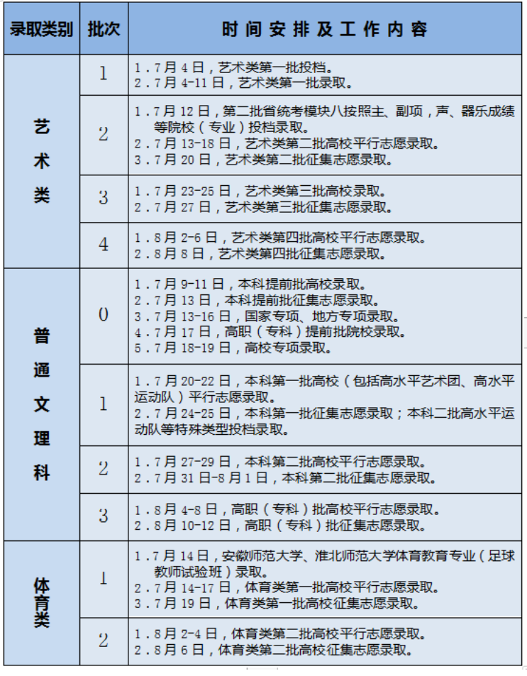 2022年安徽省普通高校招生錄取時(shí)間表公布