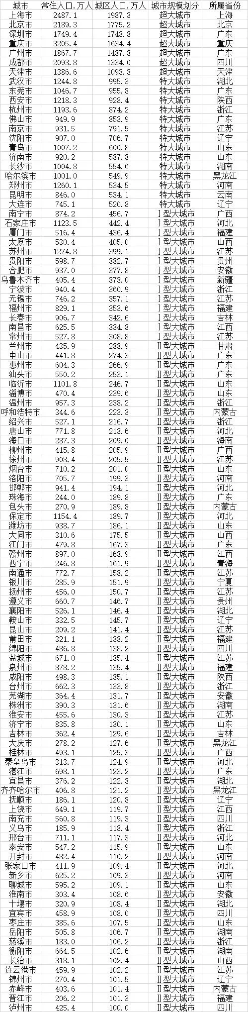 需要解釋的是,城區(qū)是指在市轄區(qū)和不設(shè)區(qū)的市,區(qū)、市政府駐地的實(shí)際建設(shè)連接到的居民委員會(huì)所轄區(qū)域和其他區(qū)域。也就是說,市轄區(qū)內(nèi)的農(nóng)村地帶,并不計(jì)入城區(qū)范疇??傮w看來,城區(qū)人口規(guī)模要小于市域常住人口規(guī)模,也小于市轄區(qū)人口規(guī)模。