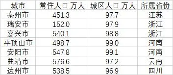 未來還有多個(gè)城市城區(qū)人口有望超過百萬大關(guān),進(jìn)入到大城市行列。第一財(cái)經(jīng)記者梳理發(fā)現(xiàn),包括泰州、瑞安、嘉興、平頂山、安陽、曲靖的城區(qū)人口均超過了97萬,其中安陽市更是達(dá)到了99.1萬人,平頂山市也達(dá)到了99萬人,嘉興市達(dá)到了98.8萬人。
