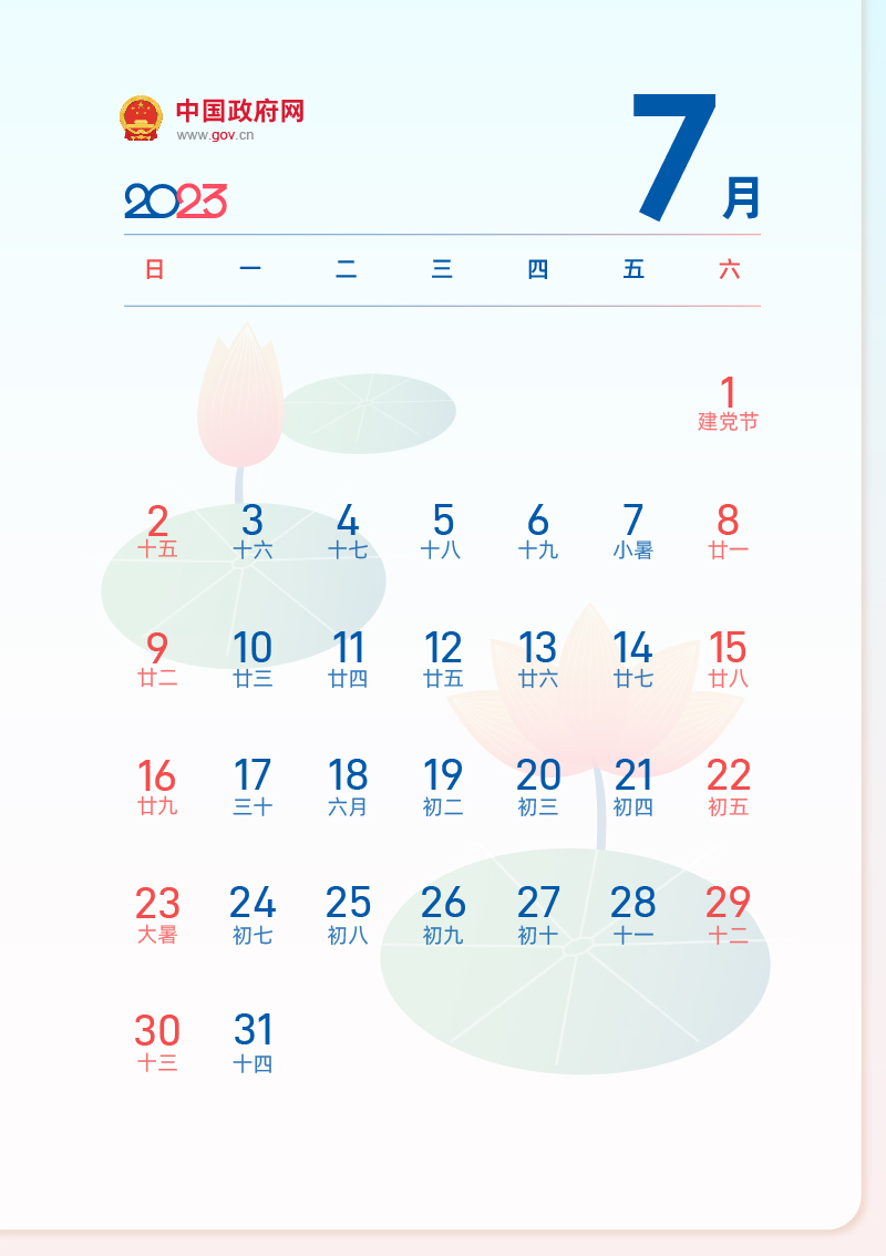 經(jīng)國(guó)務(wù)院批準(zhǔn),現(xiàn)將2023年元旦、春節(jié)、清明節(jié)、勞動(dòng)節(jié)、端午節(jié)、中秋節(jié)和國(guó)慶節(jié)放假調(diào)休日期的具體安排通知如下。