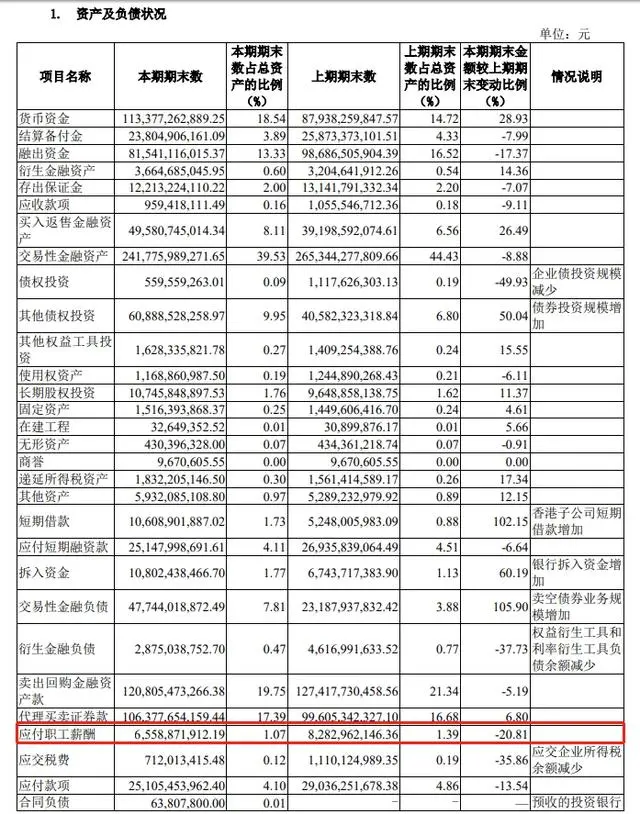 薪酬下降的具體幅度如何?財報顯示,2022年,招商證券應付職工薪酬為65.59億元,同比下降20.81%。
