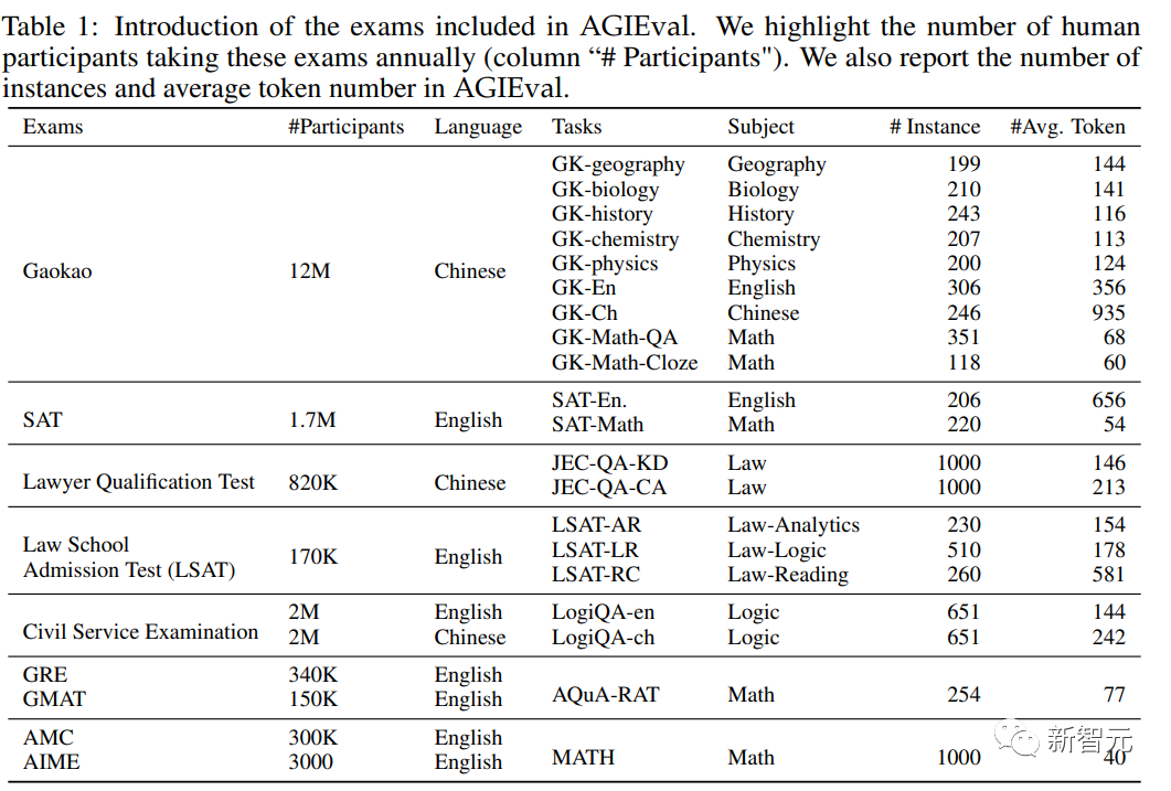 為了實現(xiàn)這一目標,研究人員選擇了各種官方的、公開的、高標準的招生和資格考試,以滿足一般人類應試者的需要,包括大學入學考試、法學院入學考試、數(shù)學考試、律師資格考試和國家公務員考試,每年都有數(shù)百萬尋求進入高等教育或新職業(yè)道路的人參加這些考試。