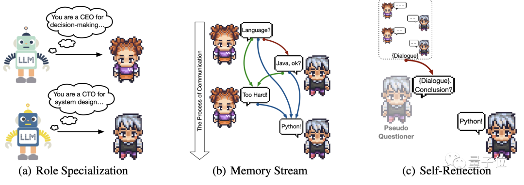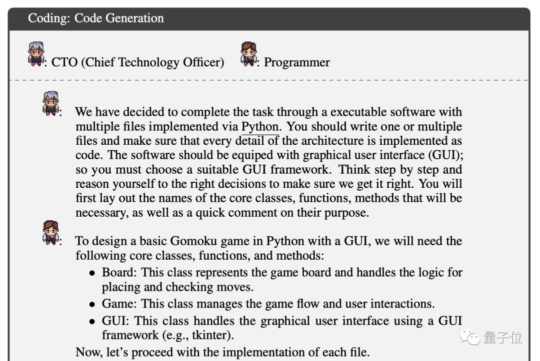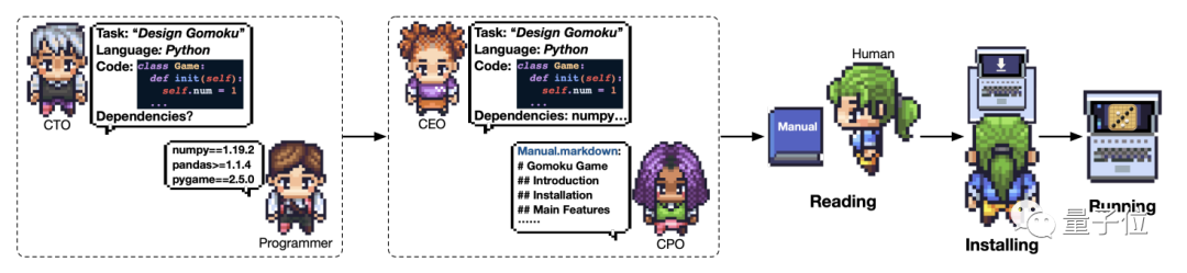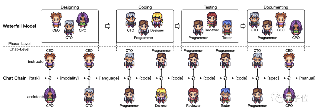 在「公司」中,十多個(gè)聊天機(jī)器人分別扮演著不同的角色,串聯(lián)在一起完成開(kāi)發(fā)工作。