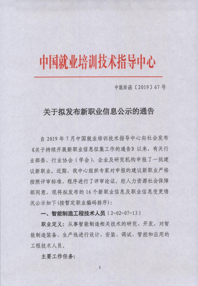 據(jù)中國就業(yè)培訓(xùn)技術(shù)指導(dǎo)中心官方網(wǎng)站了解到,自2019年7月中國就業(yè)培訓(xùn)技術(shù)指導(dǎo)中心向社會發(fā)布《關(guān)于持續(xù)開展新職業(yè)信息征集工作的通告》以來,有關(guān)行業(yè)部委、行業(yè)協(xié)會(學(xué)會)、企業(yè)及研究機構(gòu)申報了一批建議新職業(yè)。