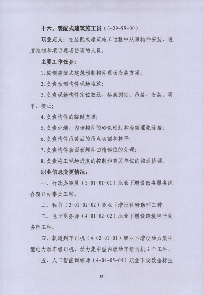 據(jù)了解,16個新職業(yè)為智能制造工程技術(shù)人員、工業(yè)互聯(lián)網(wǎng)工程技術(shù)人員、虛擬現(xiàn)實工程技術(shù)人員、連鎖經(jīng)營管理師、供應(yīng)鏈管理師、網(wǎng)約配送員、人工智能訓(xùn)練師、電氣電子產(chǎn)品環(huán)保檢測員、全媒體運營師、健康照護師、呼吸治療師、出生缺陷防控咨詢師、康復(fù)輔助技術(shù)咨詢師、無人機裝調(diào)工、高鐵線路綜合維修工和裝配式建筑施工員。