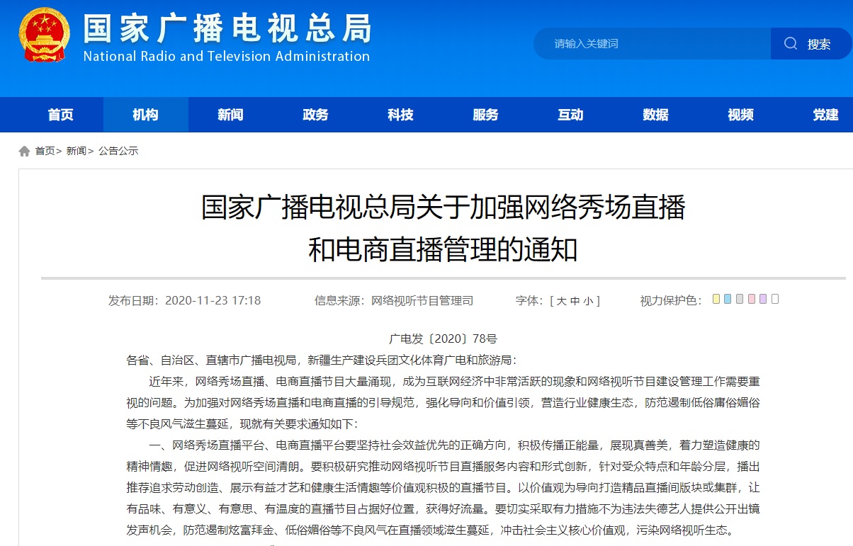11月23日消息今天,廣電總局發(fā)布了關(guān)于加強(qiáng)網(wǎng)絡(luò)秀場(chǎng)直播和電商直播管理的通知,通知指出,網(wǎng)絡(luò)秀場(chǎng)直播平臺(tái)要對(duì)網(wǎng)絡(luò)主播和打賞用戶實(shí)行實(shí)名 ...