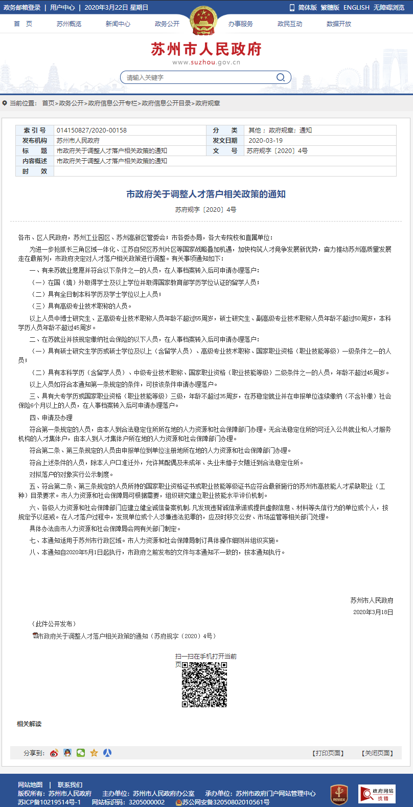 據(jù)江蘇省蘇州市政府官網(wǎng),20日,蘇州市政府發(fā)布關(guān)于調(diào)整人才落戶(hù)相關(guān)政策的通知,包括具有全日制本科學(xué)歷及學(xué)士學(xué)位以上人員即可申請(qǐng)落戶(hù)等 ...
